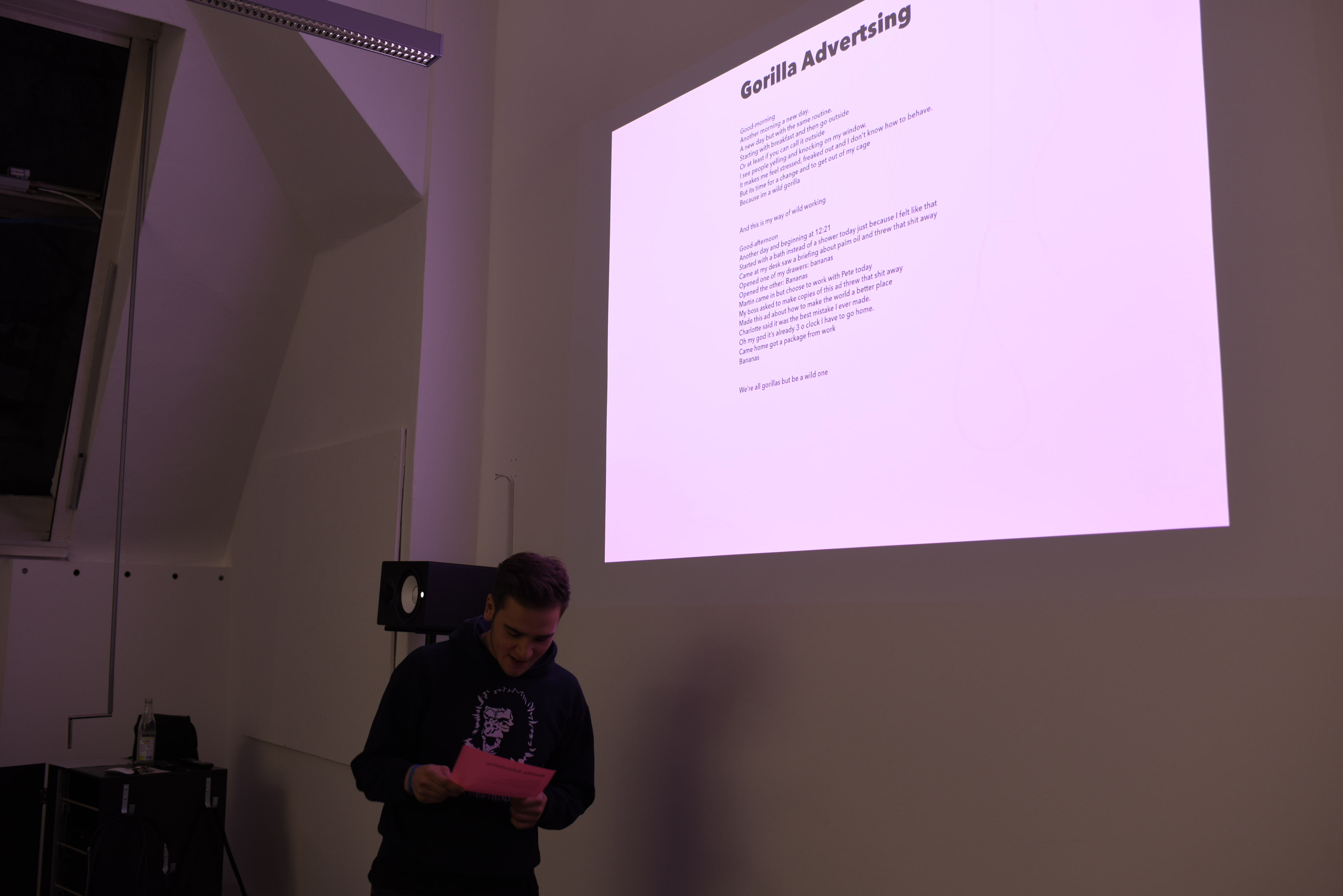 Im Februar 2020 veranstaltete die Klasse Klima einen eintätigen Workshop für Studierende des Studiengangs „Advertising & Beyond“ der Willem de Kooning Academy, Rotterdam. Die Studierenden setzten sich mit ethischen Fragen in der Werbung auseinander. Für wen möchte ich arbeiten? Heiligt der Zweck die Mittel? Wo ziehe ich persönliche Grenzen? Die Studierenden bildeten Diskussionsgruppen und schrieben ihre Haltung in Manifesten zur Ethik in der Werbung auf.